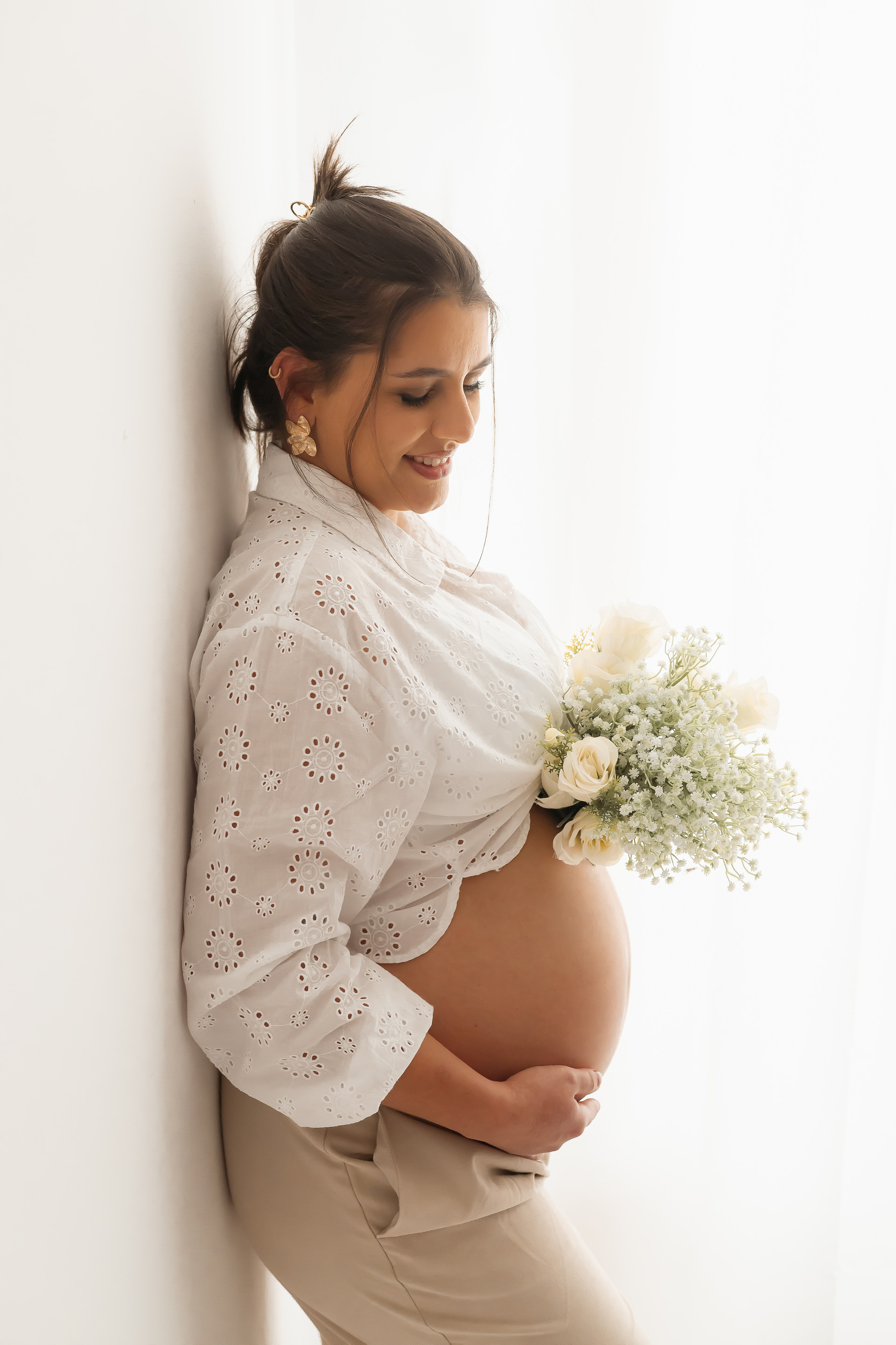 - O momento ideal para realizar a sessão de fotos é entre 26 e 34 semanas de gestação, mas vai depender de cada grávida